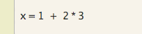 In our frame-based editor, this can be entered entirely with keys: =x 1+2*3 as follows: