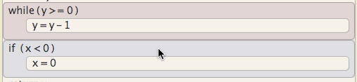 There is no syntax to memorise, type in or mess up; the keywords (if, while, etc) are just non-editable labels. (If you are familiar with block-based editors, we discuss how frame-based editing is different later on.)