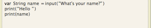 Sometimes a slot is a single text field; a variable name slot in a variable name definition is a single text field. But expression slots can have a richer structure. This allows us to do things like having prompt text for parameters in method calls: